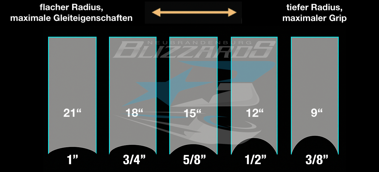 Welcher Schliff der richtige ist, hängt stark von Gewicht, Spielstil und persönlichen Vorlieben ab. Schwerere Spieler entscheiden sich häufig für tiefere Radien, um mehr Kontrolle und Kantengriff bei hoher Belastung zu erhalten. Leichtere Spieler bevorzugen meist flachere Radien, da diese das Gleiten erleichtern. Auch der gewünschte Mix aus Agilität, Stabilität und Geschwindigkeit spielt eine große Rolle. Der Standard-Hockeyschliff liegt bei den Blizzards bei ca. 14 bis 15 mm – ein bewährter Mittelwert für ein ausgewogenes Verhältnis aus Grip und Gleitfähigkeit.
