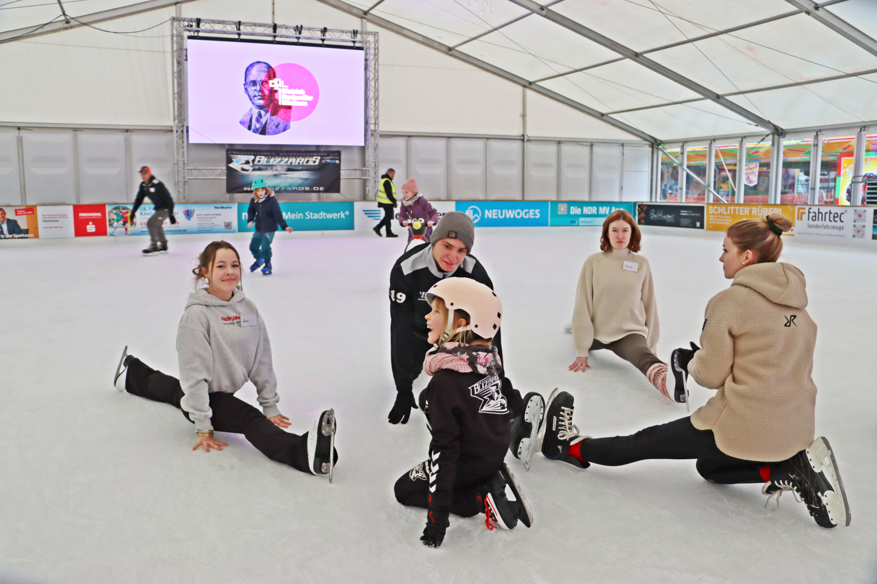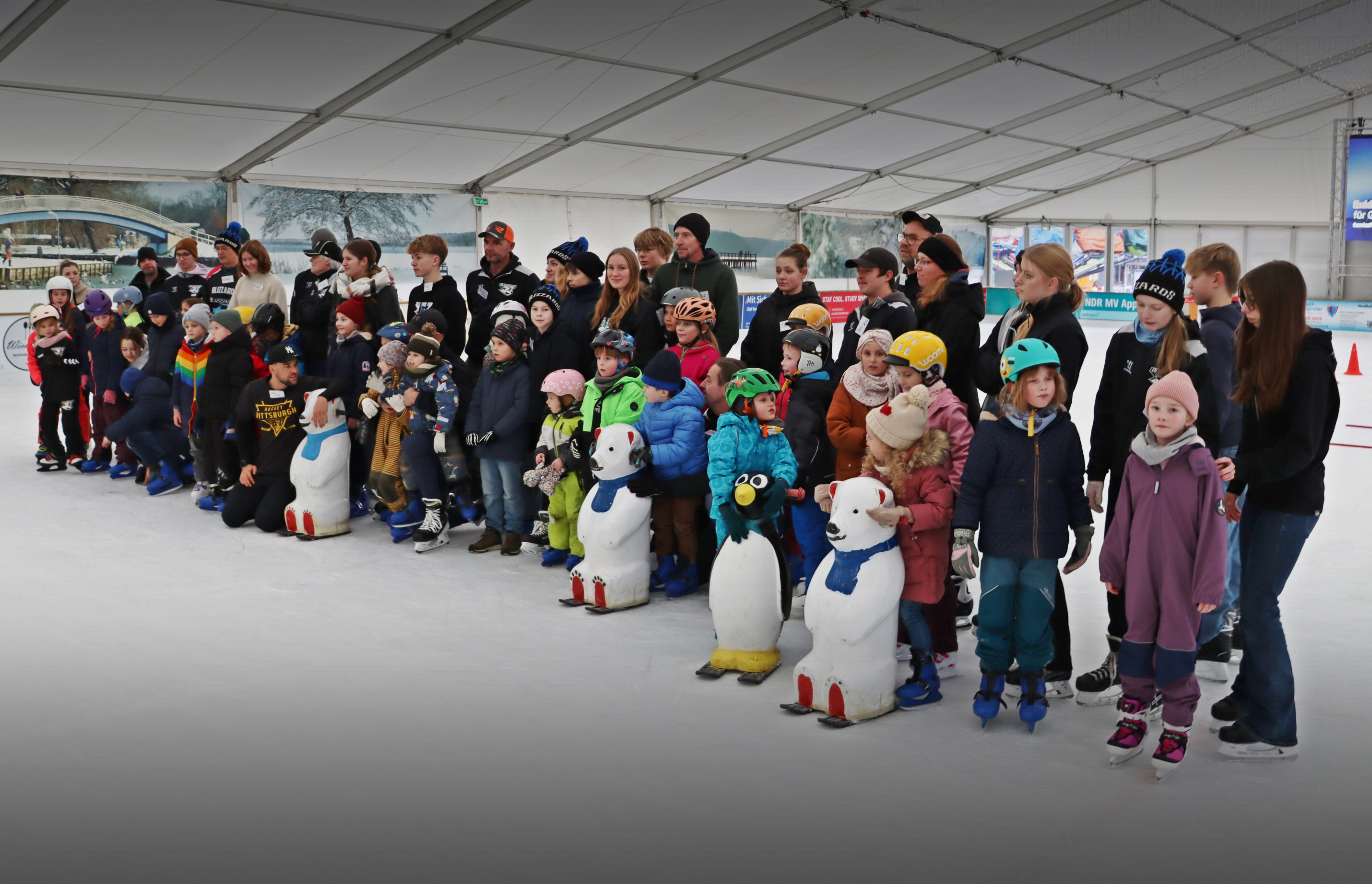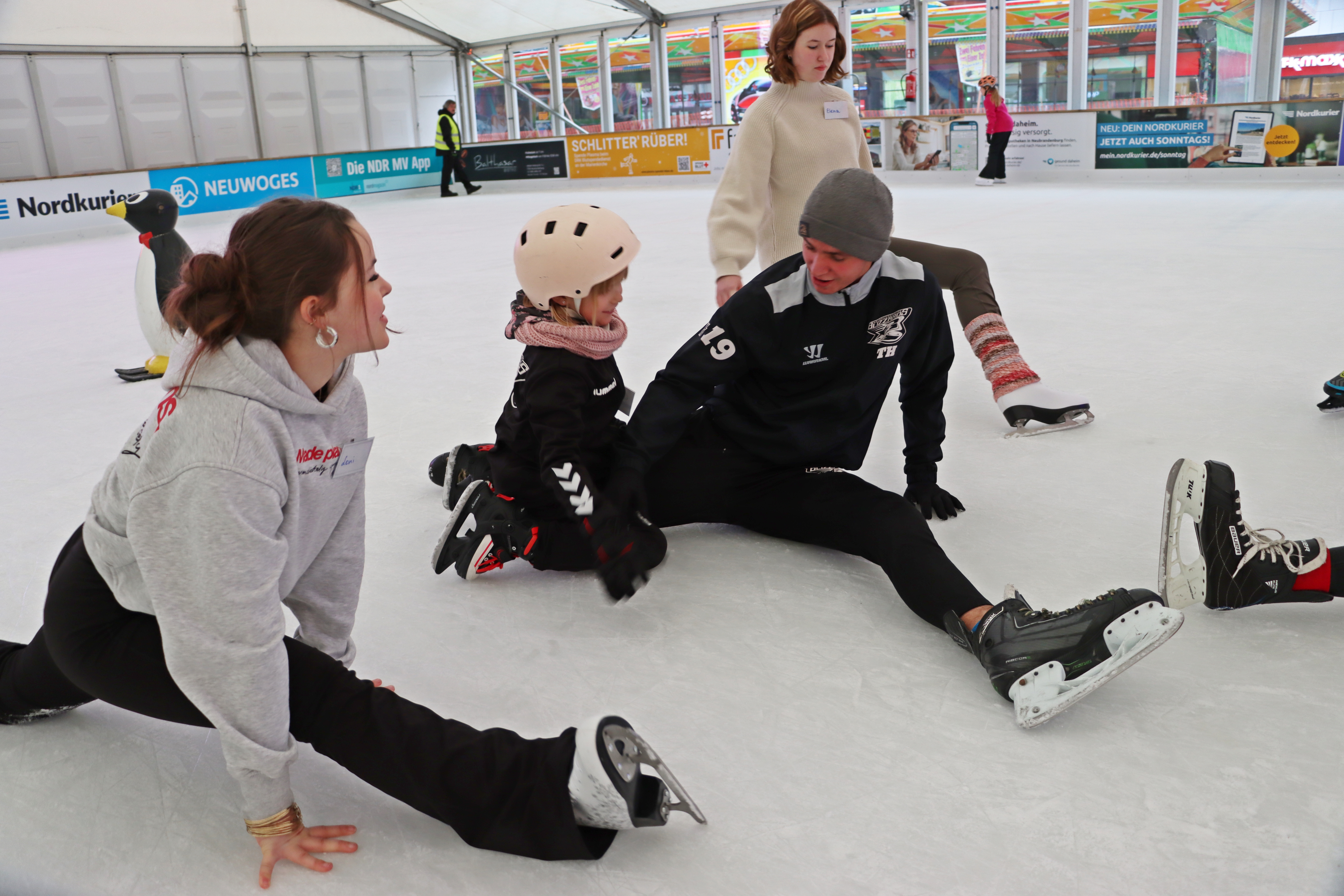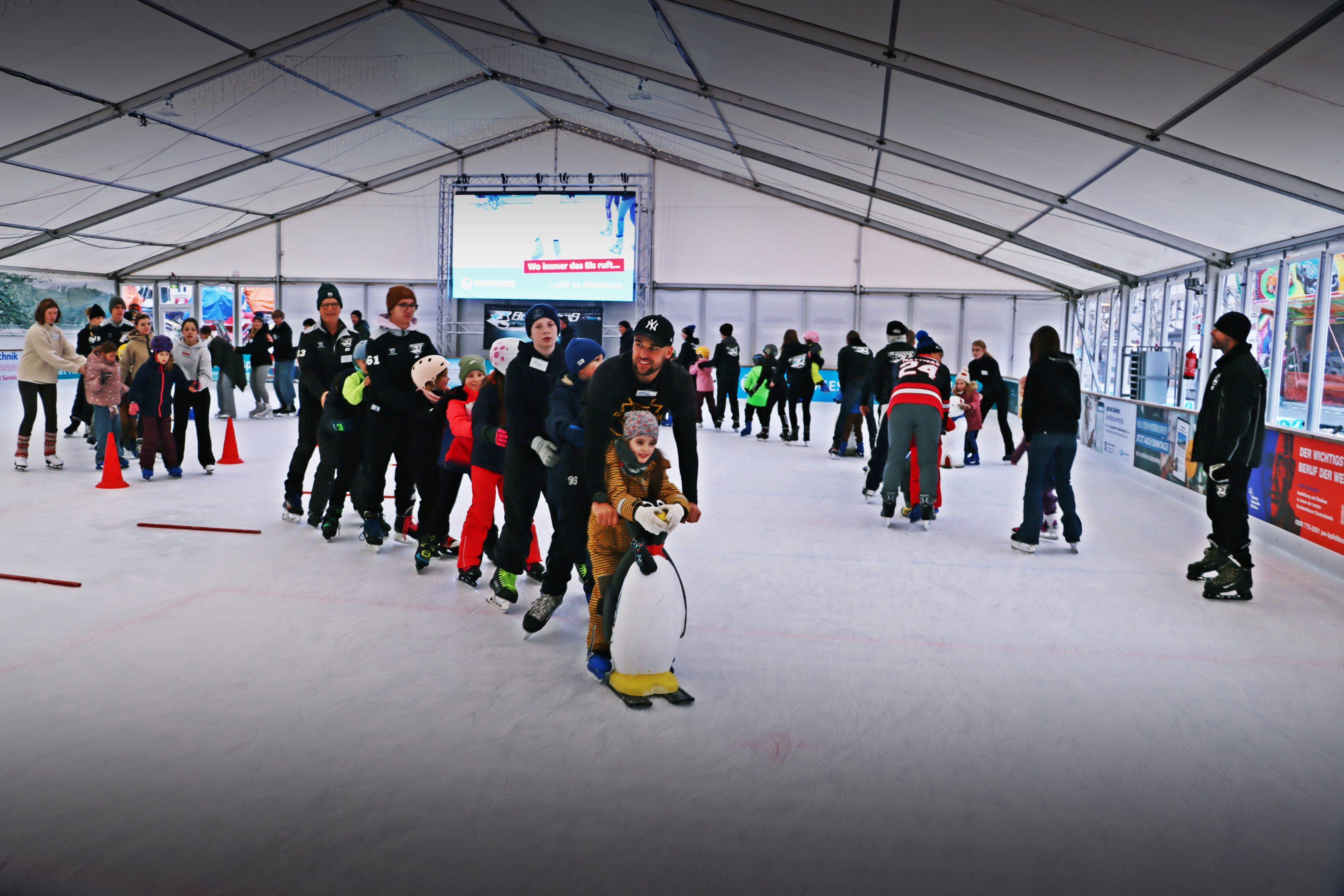 Zu Beginn der "EisSchule" #3 im Eislaufzelt auf dem Neubrandenburger Marktplatz waren alle Laufhilfen im Einsatz, zum Ende standen doch einige Bärchen, Pinguine und Co. arbeitslos am Rand herum - so soll es sein. Auch unsere jüngste Teilnehmerin (3 Jahre jung) taute langsam und drehte mit unserer "Becki" ihre Runden. So brachte der große "Zug🚂" wieder das Ende und viel Spaß. ⛸️⛸️