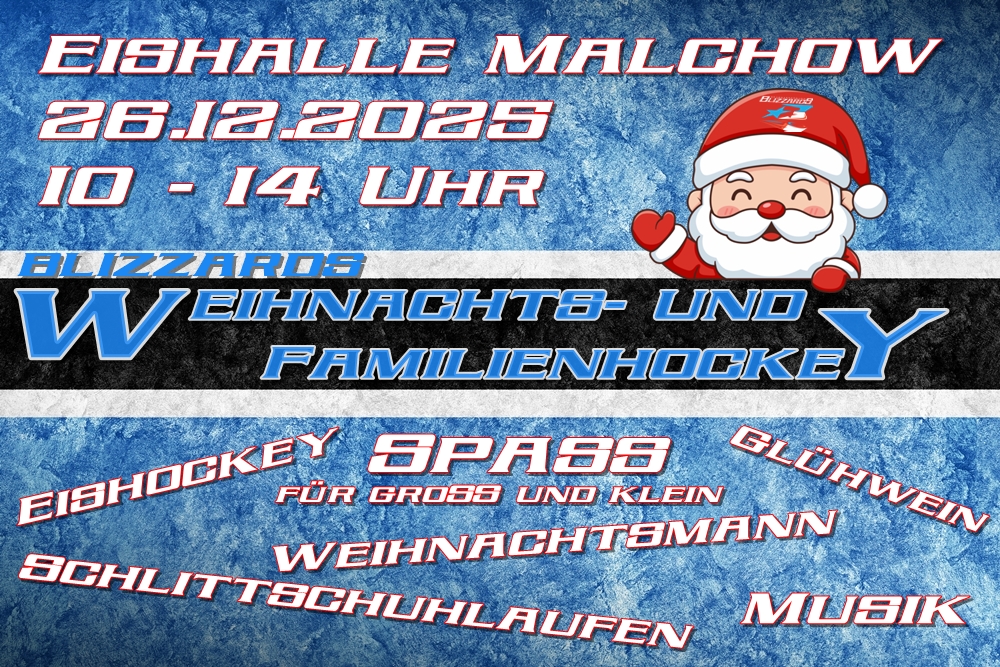 Es werden gemütliche Lieder zu hören sein, der "Merch-Stand" der Blizzards wird aufgebaut sein, der Imbiss hat offen und somit ist für einen tollen gemeinsamen "Blizzards-Weihnachts-Tag" auf und neben dem Eis gesorgt. Gerne sind Kostüme -welcher Art auch immer- gesehen 😜!